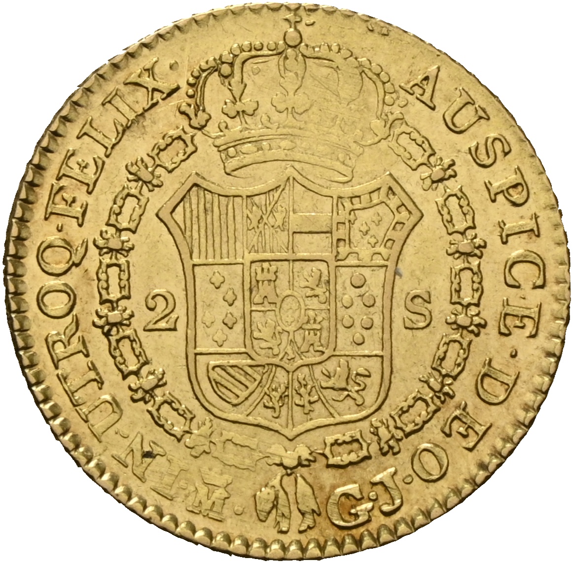 Valøren 2 escudos utgjorde en betydelig gullmynt i samtiden, egnet for større betalinger, men lå under de høyere hovedvalørene som 4 og 8 escudos.