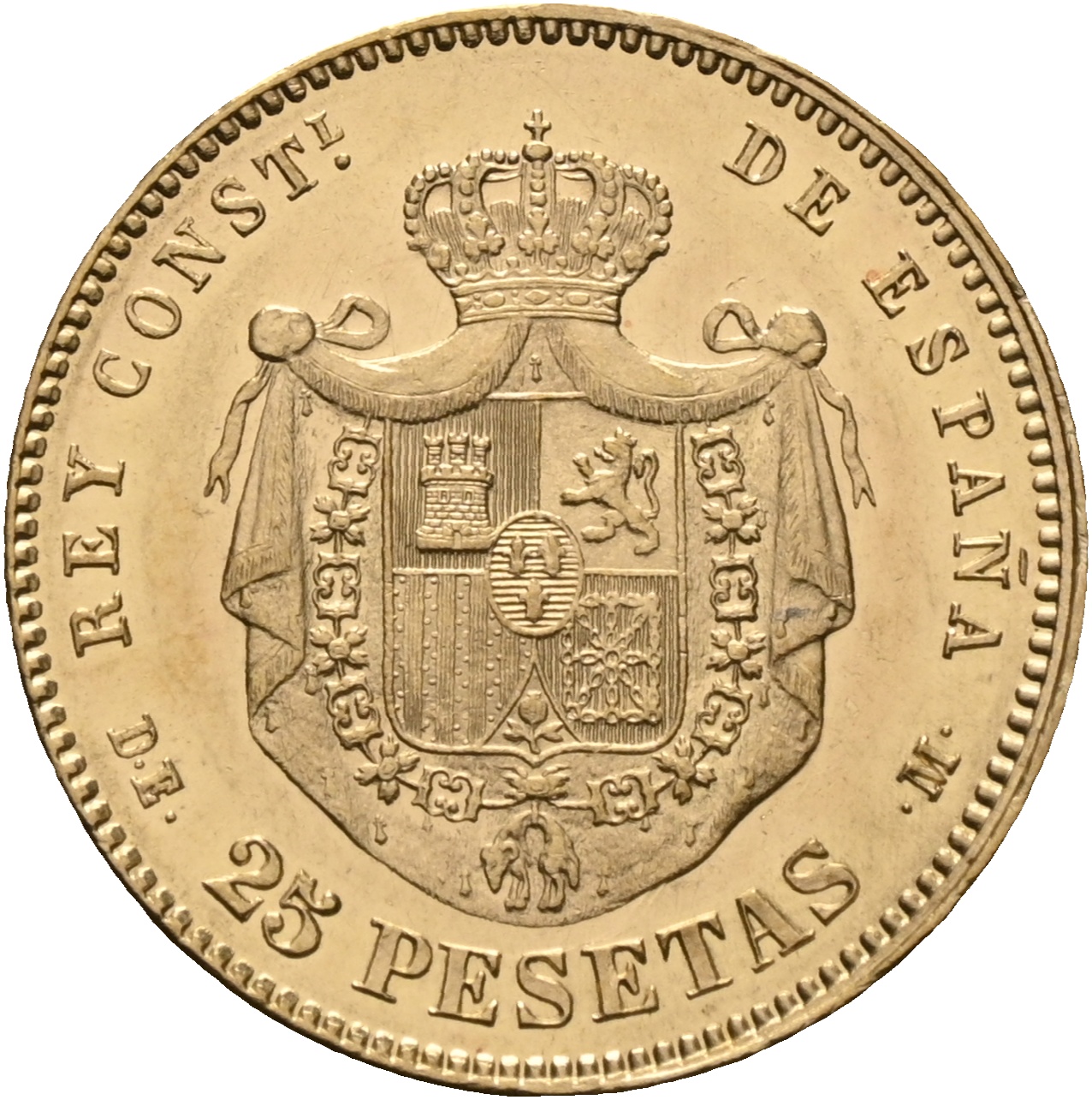 Spania. Alfonso XII (1874–1885). 25 pesetas, 1878