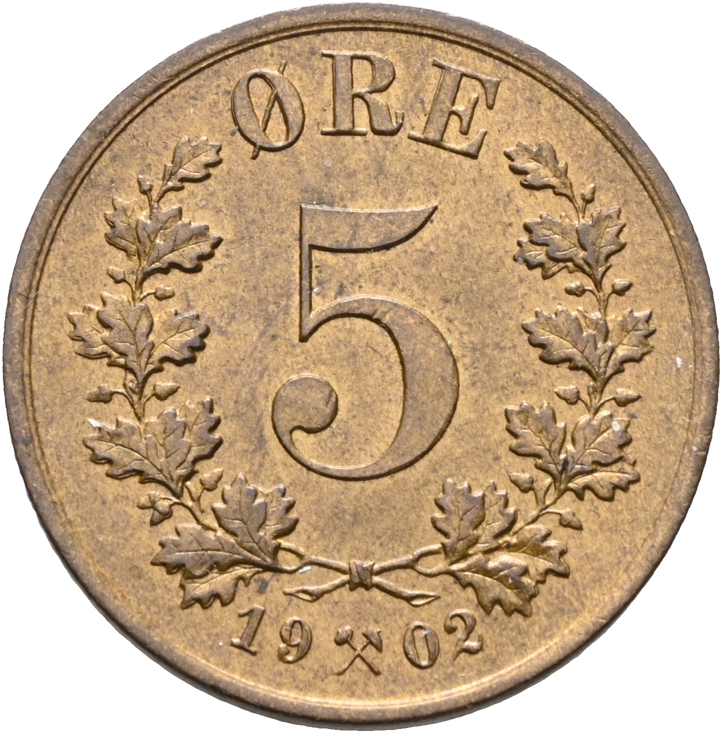 Norge Oscar II 1872-1905 5 øre 1902, BR Kv. 0/01 NM. 101 / Sieg 16 siste 5 øre av kongen
