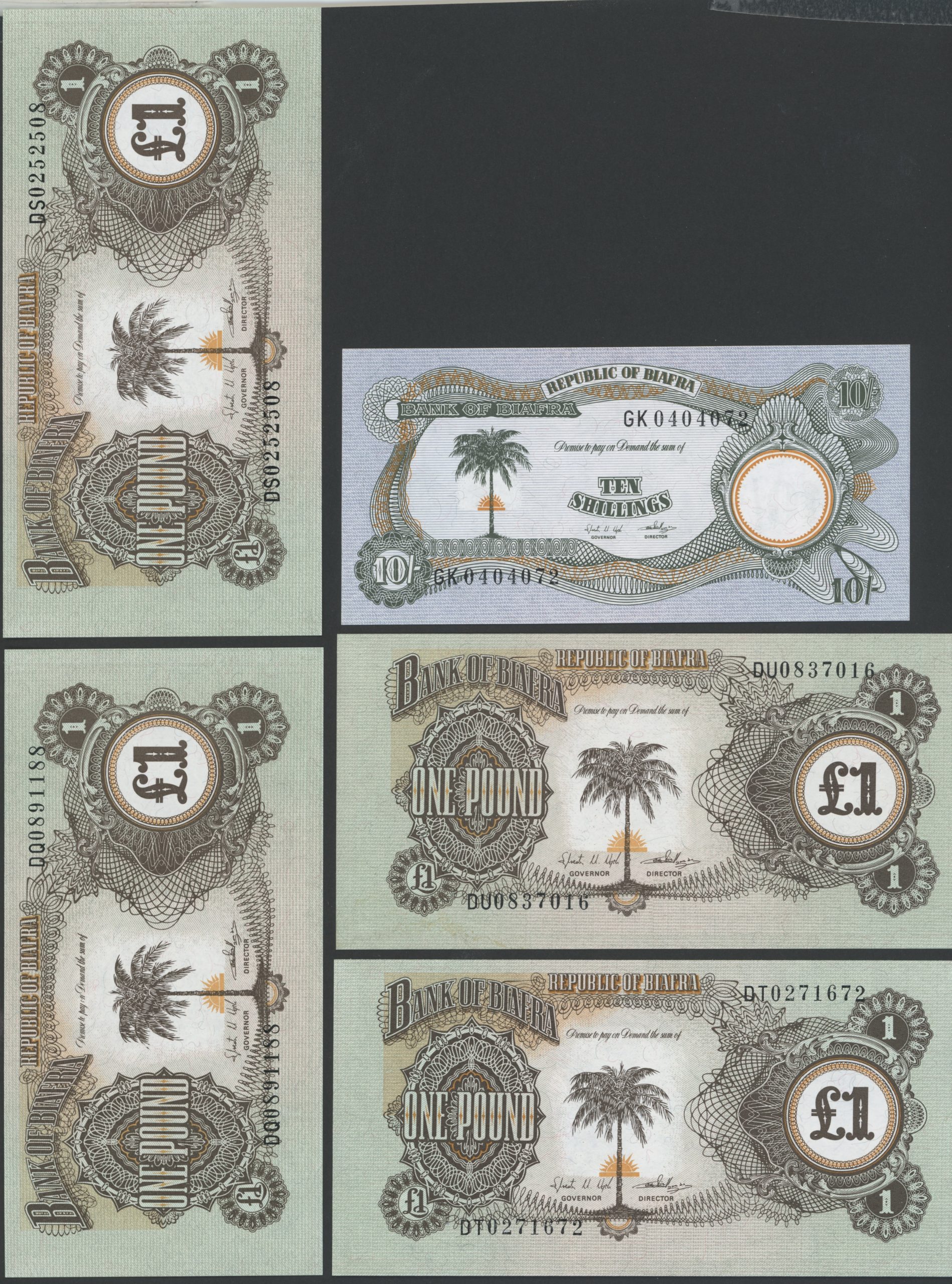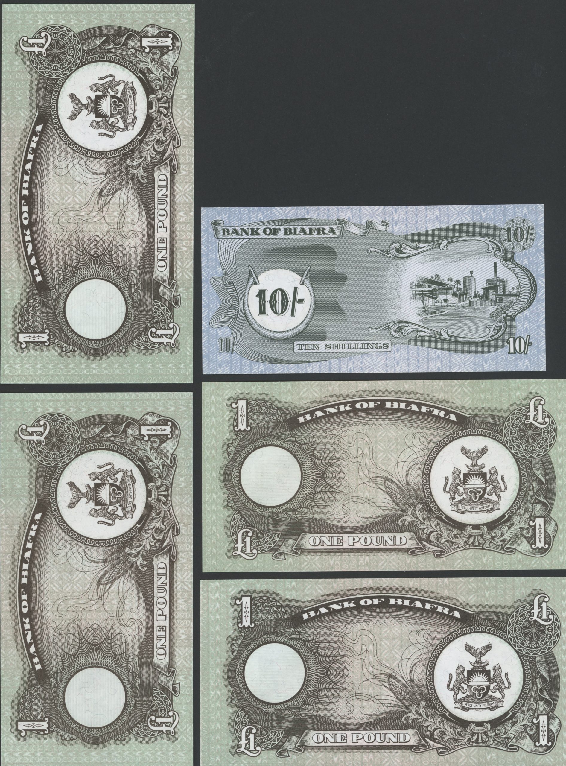 1968 Biafra 10 shilling og 4x 1 pound, 0