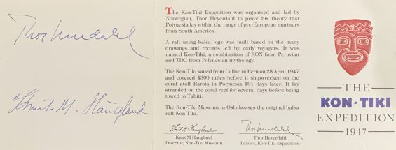 Signert av Thor Heyerdahl.