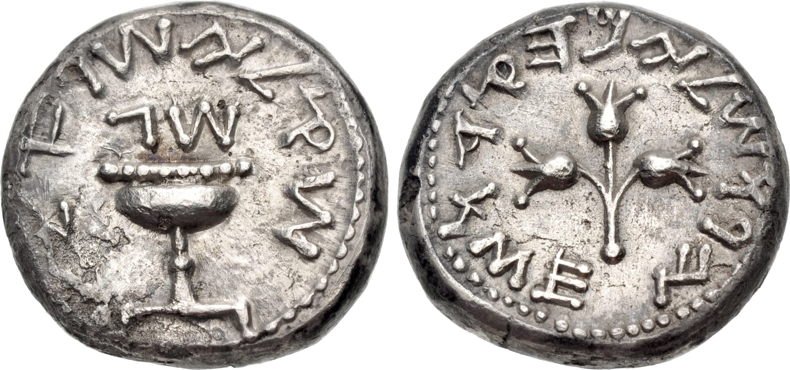 Judaea. Første jødiske opprør (66–70 e.Kr.). AR shekel, Jerusalem