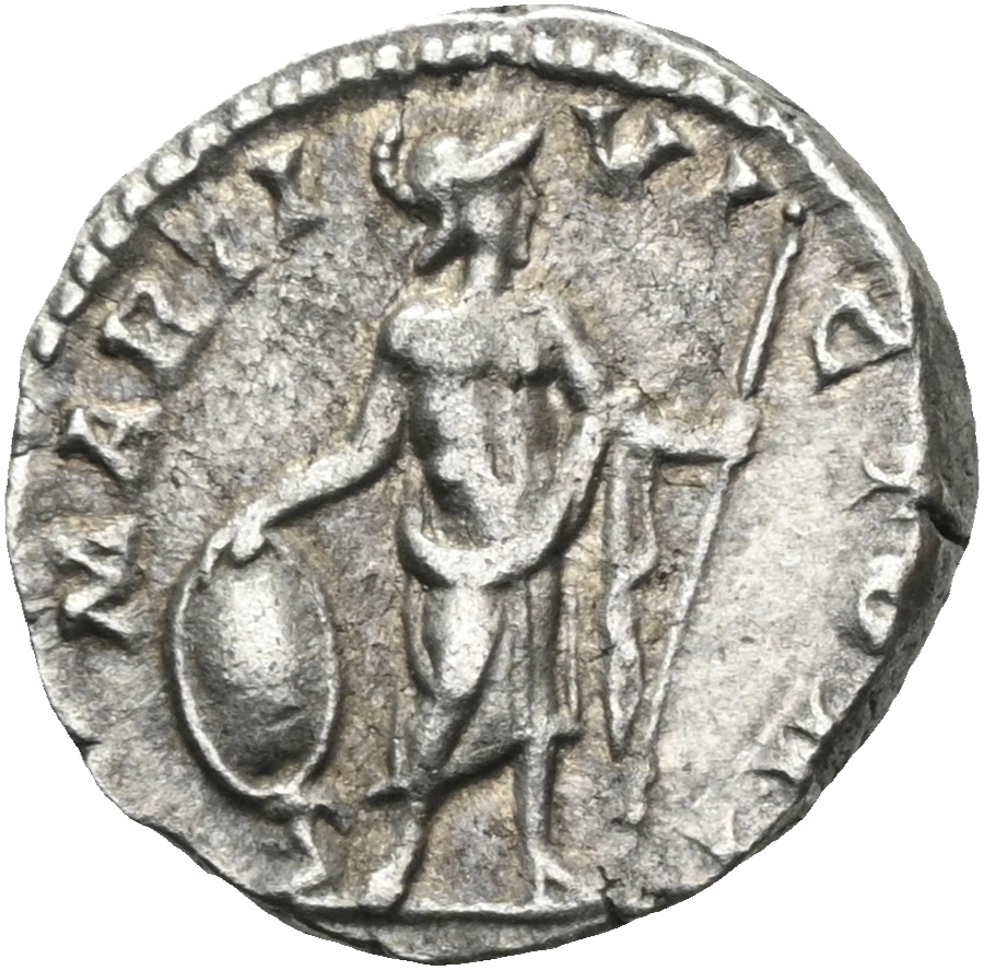 Mars stående med skjold og spyd.