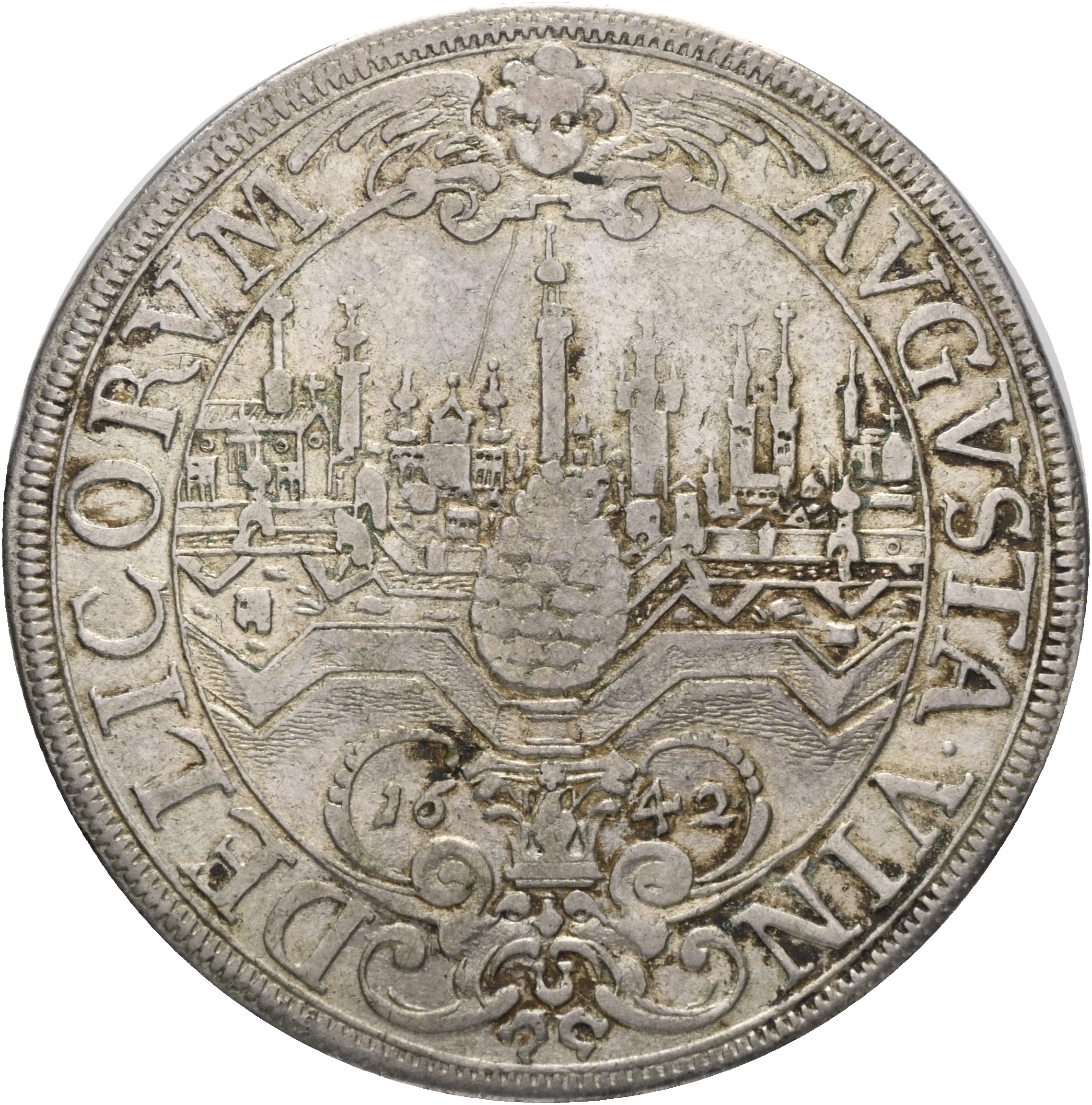 Augsburg var en av de mektigste frie riksbyene i det tysk-romerske riket — et handelssentrum av europeisk rang, kjent som hjemby for Fugger-dynastiet og som et av kontinentets ledende finansielle knutepunkter. Som fri riksby stod den direkte under keiseren og hadde rett til å prege egne mynter i sitt navn, med keiserens bilde på baksiden som bekreftelse på denne båndet.