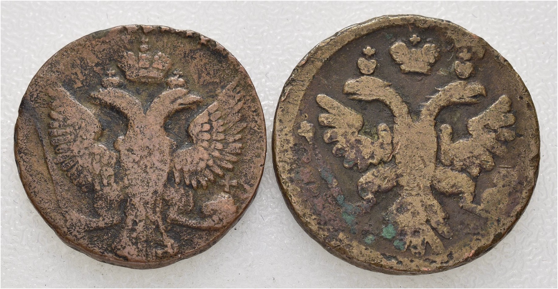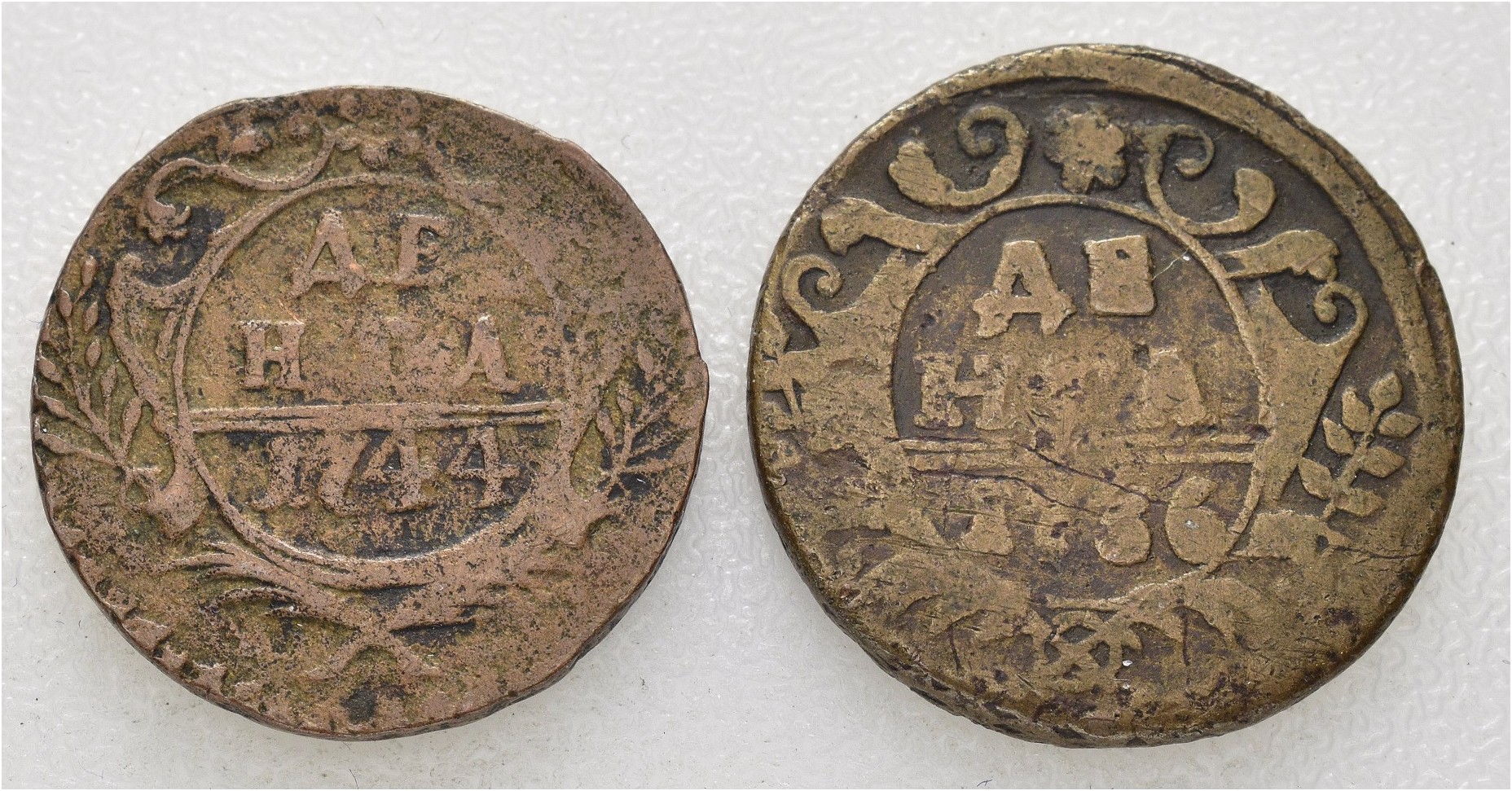 1736 og 1744 Russland denga, lott 2 stk., 1