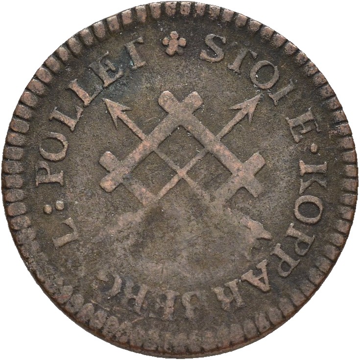 Pollett 3 öre Avesta Stora Kopparbergs Bergslags enskilda Mynt. Til brukets egne ansatte og lokal befolkningen.
