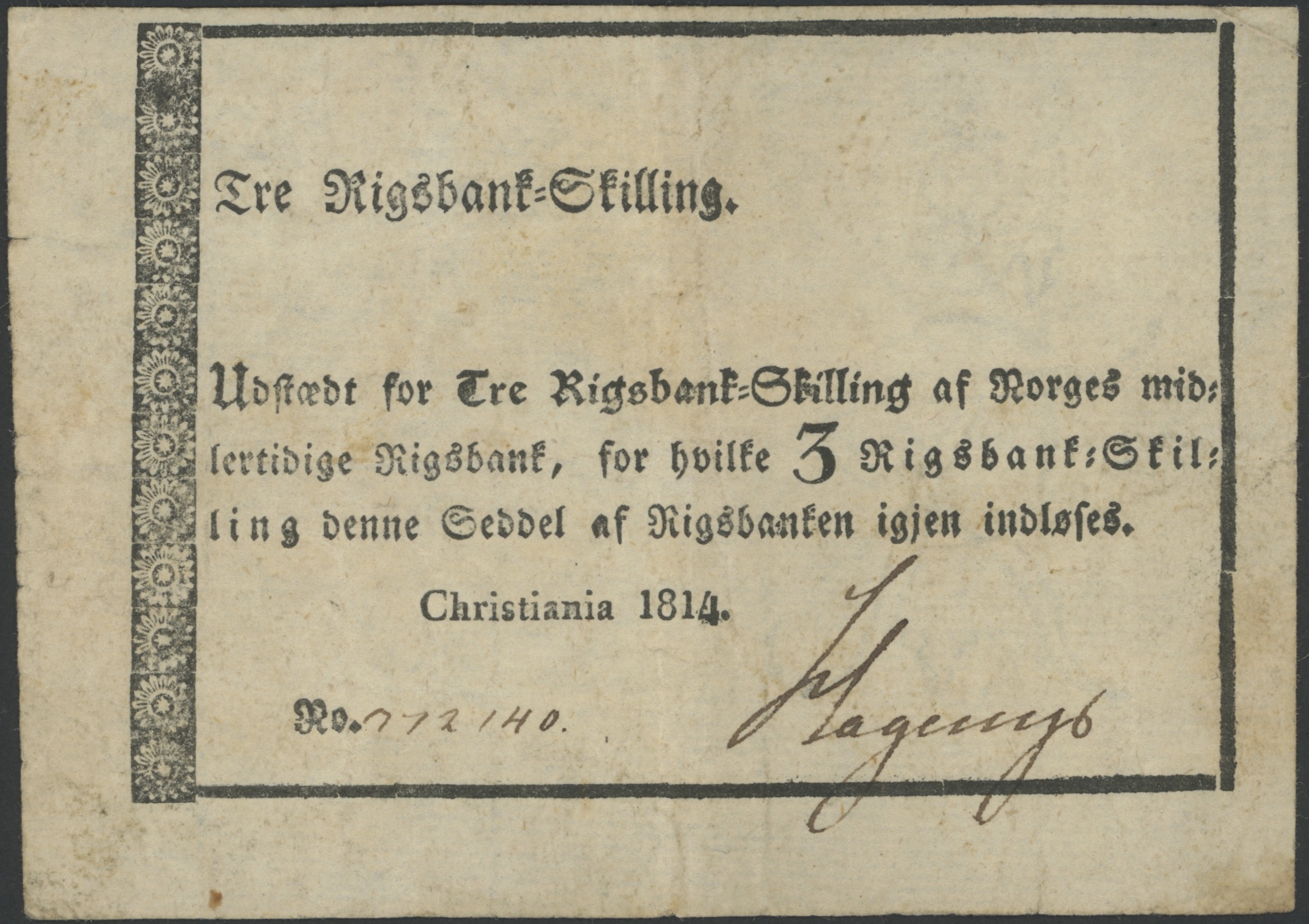 1814 3 rigsbankskilling nr. 772140, 1