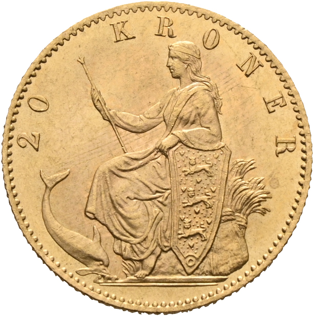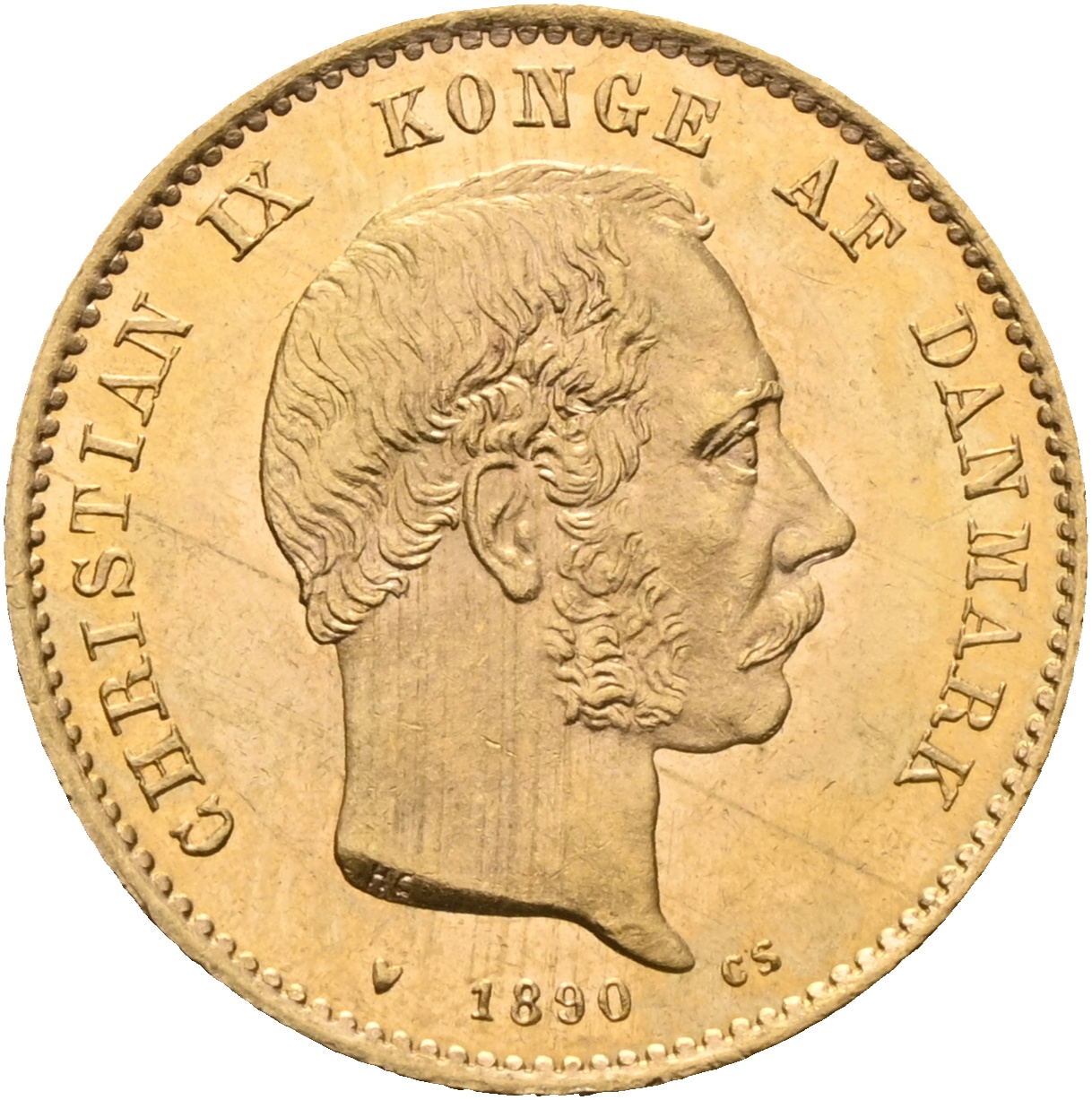 Danmark Christian IX, 1863-1906 20 kroner 1890, gull (.900) Vekt 8,96 g. Kv. 0/01 Fr. 295 / Sieg 1.1 / H. 8A