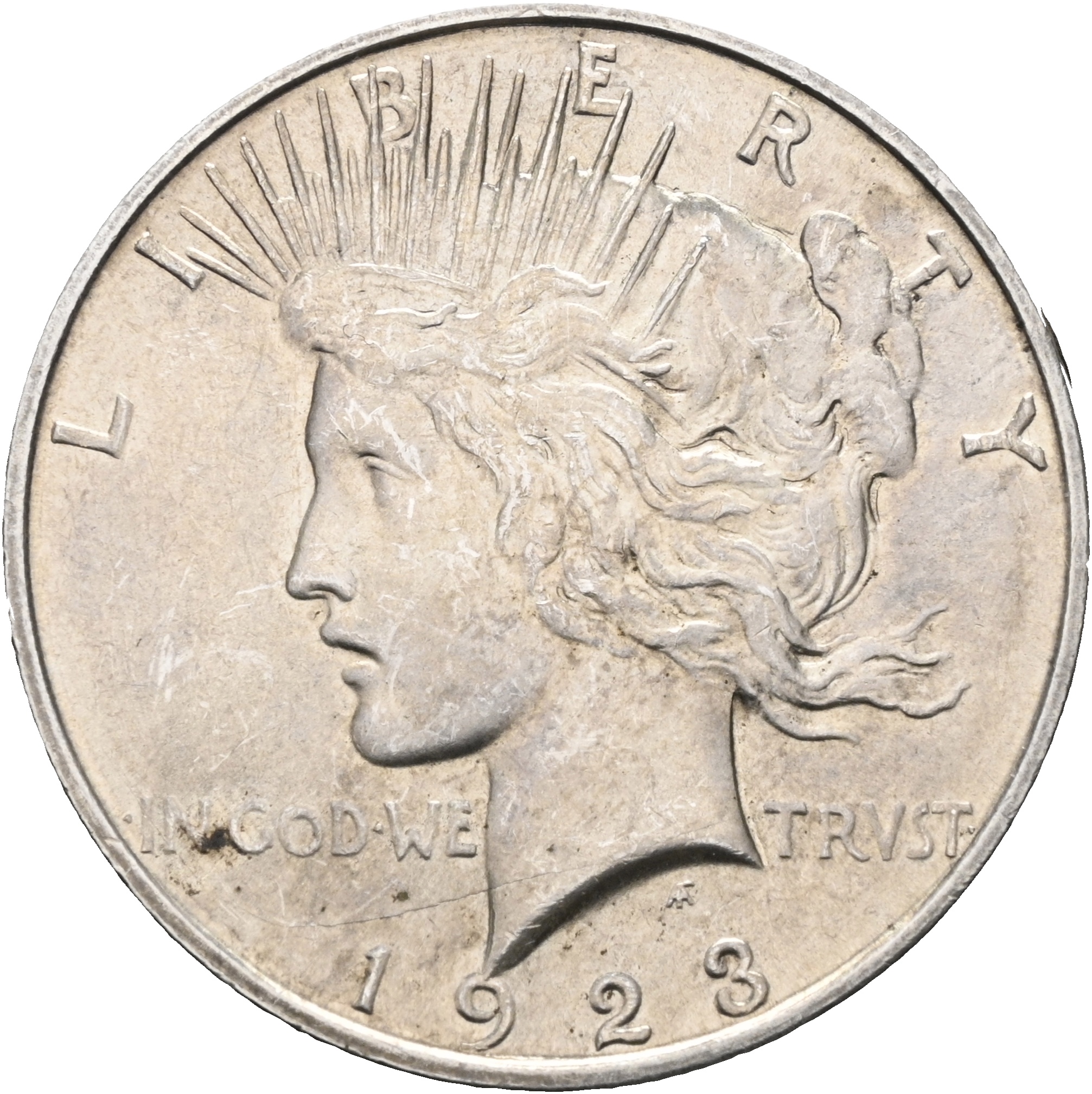 Den klassiske amerikanske sølvdollaren fra perioden 1921–1935, innført som etterfølger til Morgan-dollarene med et nytt motiv som reflekterer tiden etter første verdenskrig.