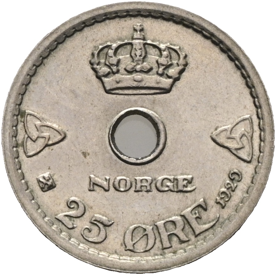 Norge Haakon VII, 1905-1957 25 øre 1929, Cu/Ni Kv. 0/01 NM. 94 / Sieg 40