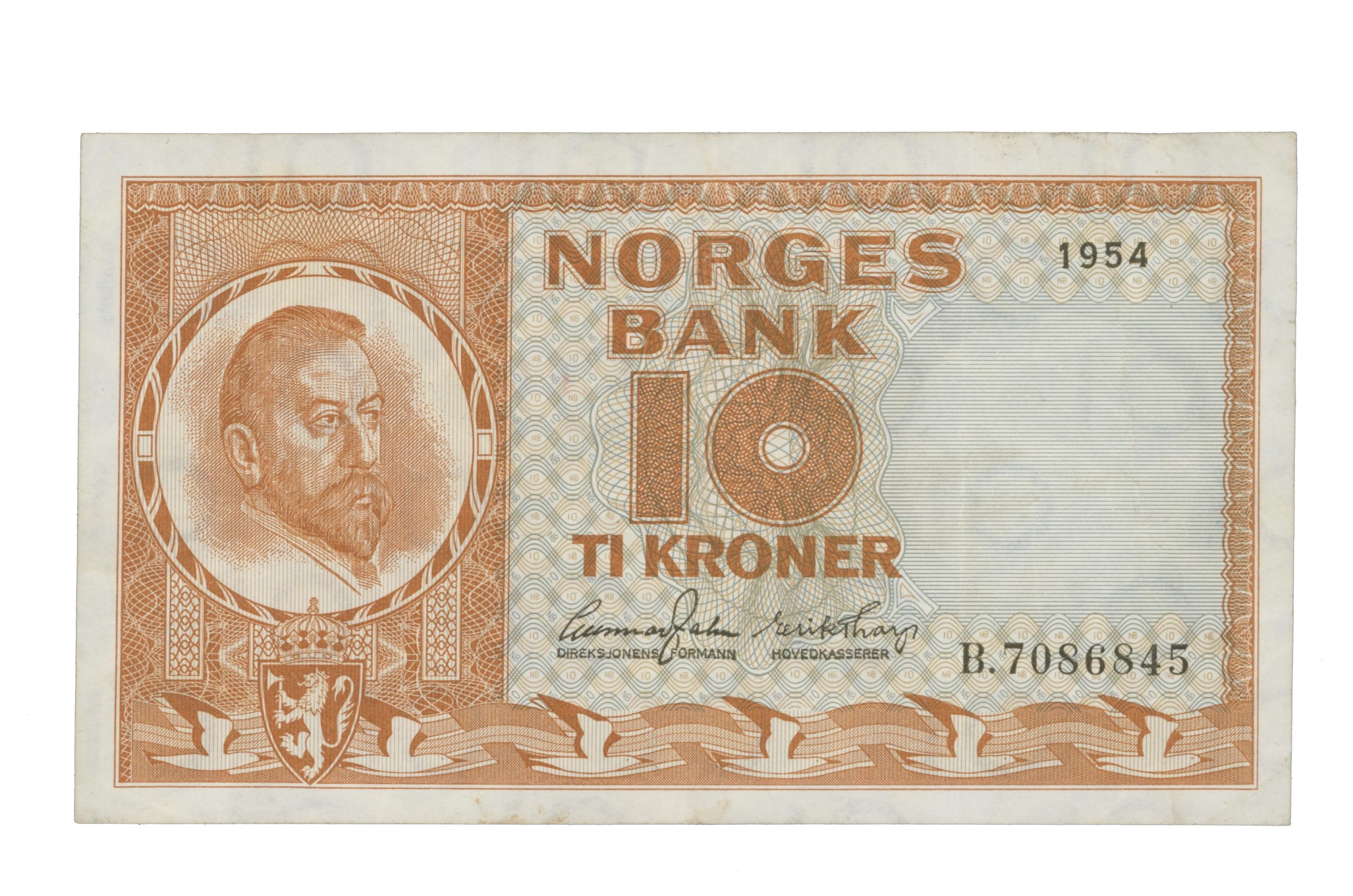 1954 10 kroner B.7086845, 4. utgave, 01