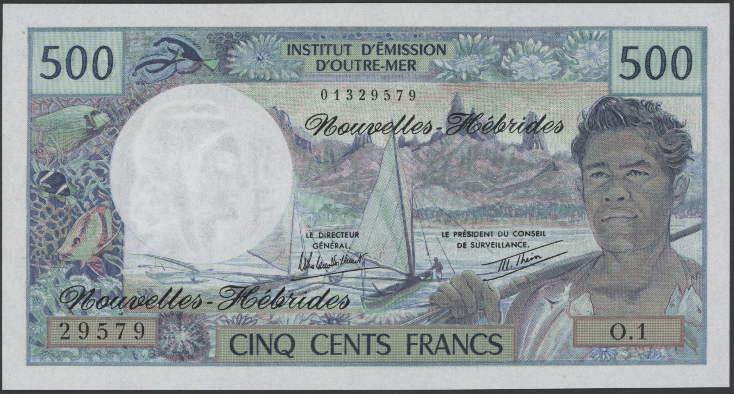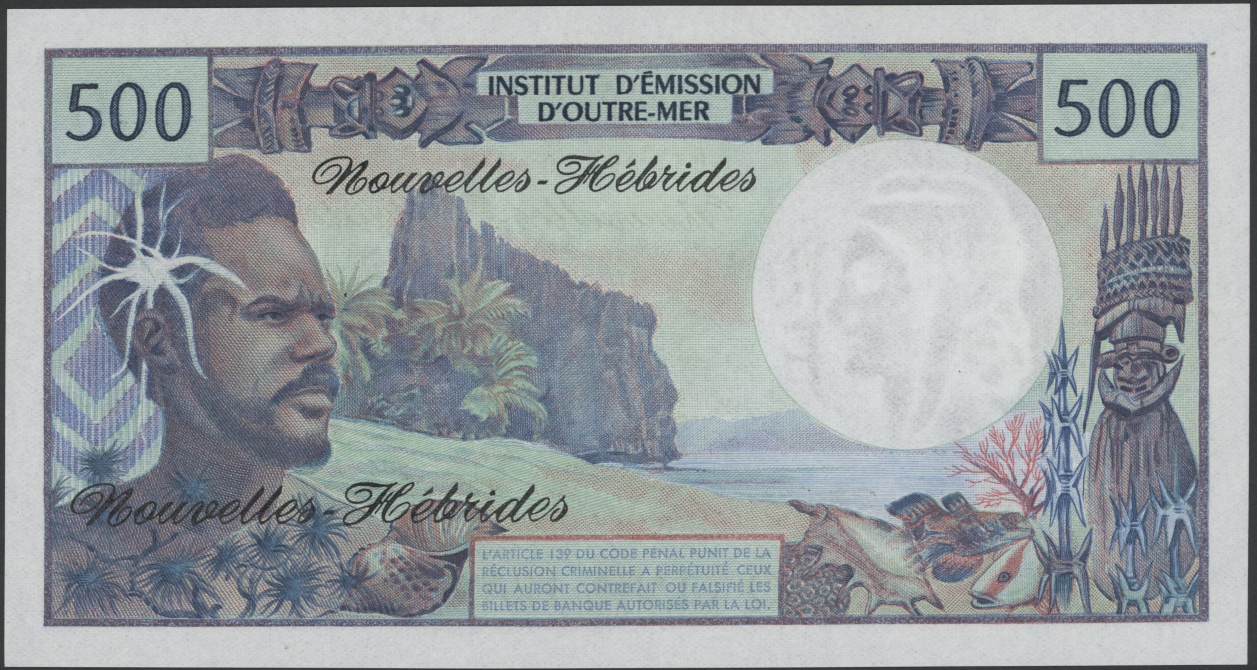 1970-80 New Hebrides 500 francs, bølget, 0