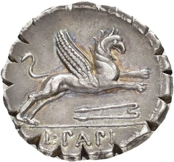 I dag har vi lagt ut et flott eksemplar av en serratert denar preget under L. Papius i år 79 f.Kr.
