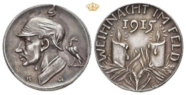 Under første verdenskrig (1914-1918) i Tyskland ble det laget medaljer som markerte jul i felt. Medaljene finnes i både bronse og sølv og inngår i en serie som ble utgitt for å hedre soldatene som tilbrakte julen under første verdenskrig på slagmarken. Antall lys markerer antall krigsår med jul på slagmarken. Da skulle en tro at serien bestod av 4 medaljer, men det ble også laget en femte medalje. Julen 1918 med teksten «WEIHNACHT DAHEIM», jul hjemme. Medaljen er gravert av Karl Goetz. Eksemplaret vi legger ut i dag er i sølv.